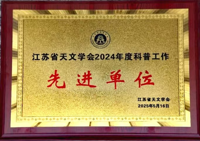 1.?為表彰我公司2024年度在天文科普建設和教育推廣領域的重要貢獻,學會授予公司“2024年度科普工作先進單位”榮譽稱號。